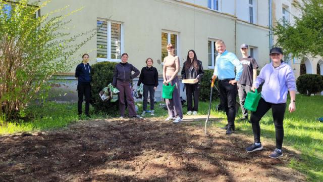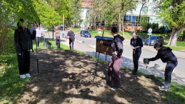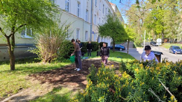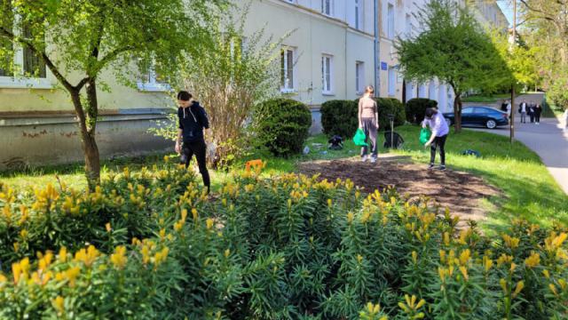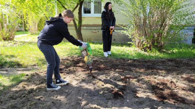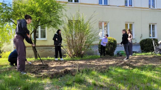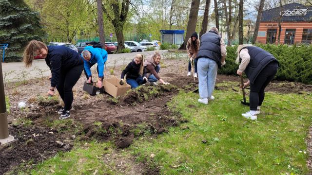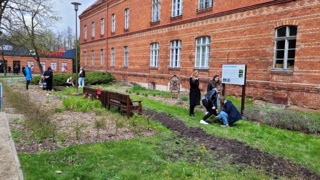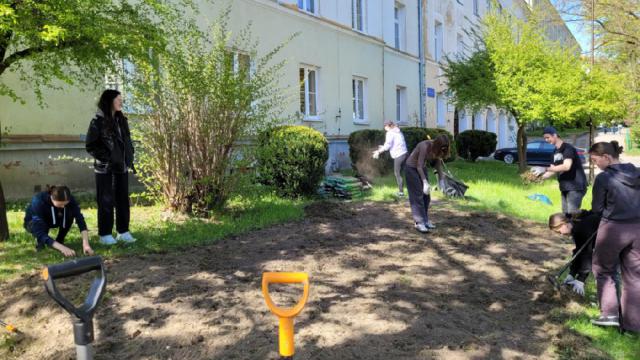 27.04.2023 - Założenie łąki kwietnej w samym centrum Kortowa. Wsparli nas wiedzą i pracą dr inż. Ewa Mackiewicz, opiekun KN Łąkarzy i dr inż. Łukasz Sikorski, opiekun KN Toksykologii Środowiska.