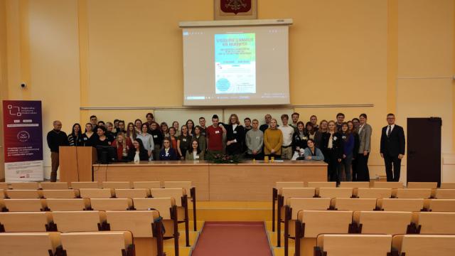 11-12.04.2019 – Główny organizator 48 MSKN 2019 w Olsztynie. W MSKN wzięło udział ponad 340 studentów i doktorantów. Z UWM było około 200 uczestników. Pozostali reprezentowali 32 wyższe uczelnie z Polski. Obrady przeprowadzono w 12 sekcjach tematycznych. Zwycięzcy sesji referatowych i posterowych otrzymali dyplomy oraz ręcznie wykonane obrazy przedstawiające sowę, symbol Konferencji. Nagrody główne - gry planszowe, dla najlepszych referatów ufundował prorektor, dr hab. Jerzy Przyborowski, prof UWM. Nagrody - głośniki bezprzewodowe dla najlepszych posterów ufundował Santander Universidades. Nagrody książkowe przekazała pani Aurelia Grejner redaktor naczelny Wydawnictwa Uniwersytetu Warmińsko-Mazurskiego w Olsztynie. Upominki dla członków Komisji oraz osób prowadzących obrady przekazał OPN-T. We współpracy z Biurem Karier UWM w Olsztynie zorganizowano Targi Pracy, w których uczestniczyli: Urząd Miasta Olsztyn, Maspex S.A., Miejskie Przedsiębiorstwo Energetyki Cieplnej w Olsztynie, Santander Bank, Warmińsko-Mazurski Ośrodek Doradztwa Rolniczego w Olsztynie, CEDROB/GOBARTO. Obiad przygotowano na stołówce akademickiej "Kuźnia Smaków", Fundacja "ŻAK" UWM. Wieczorem odbyła się uroczysta kolacja. Sala HP PARK ledwie pomieściła wszystkich chętnych uczestników. Noclegi uczestnicy zapewniali we własnym zakresie, jednak Fandacja "ŻAK" zaproponowała promocyjne ceny noclegów w akademikach, a HP Hotel Park także przygotował promocyjną ofertę na hasło "MSKN 2019". W piątek rano odbyła się gra terenowa "Qest-Kortowo", podczas której uczestnicy poznali ciekawe, a nieodwiedzane miejsca naszego Kampusu. Nagrodami dla zwycięzców były stylowe kubki Olsztyńskiego Parku Nauko-Technologicznego. Konferencję zakończono na terenie ogrodów UWM w Olsztynie przy ognisku nad brzegiem Jeziora Kortowskiego, które za zgodą pana dr hab. Jacka Olszewskiego, prof. UWM, zorganizował Ośrodek Dydaktyczno–Doświadczalny Wydziału Kształtowania Środowiska i Rolnictwa.