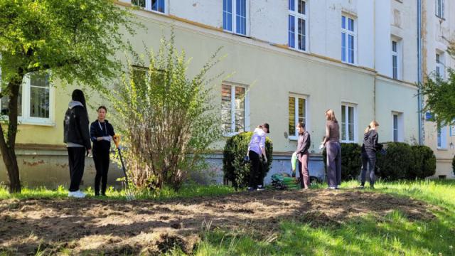 28.04.2025 - Na skarpie między budynkiem Wydziału, a ul. Oczapowskiego założyliśmy łąkę kwietną roślin miododajnych. Miejmy nadzieję, że odpowiednio podlewana już za kilka tygodni stanie się kolorową wyspą w samym środku Kortowa.