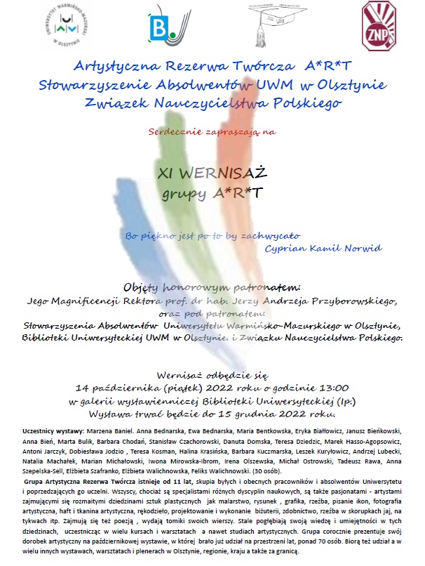 Dobrą tradycją Uniwersytetu Warmińsko-Mazurskiego w Olsztynie jest to, że wraz z początkiem nowego roku akademickiego rozpoczyna także nowy sezon artystyczny. Agendy działające zarówno w Akademickim Centrum Kultury jak i w Ośrodku Inicjatyw Artystycznych wracają po wakacjach do swoich działań, otwierając się także na nowych członków. Świetnym wprowadzeniem w tę artystyczno-kulturalną atmosferę kampusu uniwersyteckiego było uroczyste rozpoczęcie roku kulturalnego, na które zaprosił Wydział Sztuki. W Centrum Konferencyjno-Szkoleniowym wystąpiły Czytaj reszte tego wpisu »