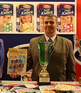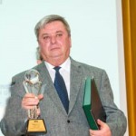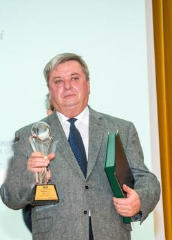 inż. Krzysztof Skorupa po odbiorze statuetki za zajęcie I miejsca w rankingu gospodarstw rybackich.