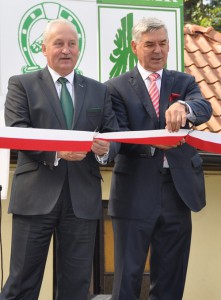 Marszałek dr. Gustaw Marek Brzezin i rektor UWM prof. dr hab. Ryszard Górecki przecinają symboliczna wstęgę