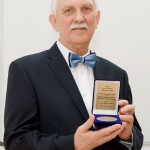 Rektor prof. dr hab. Ryszard Górecki wręczył prof. dr. hab. Tadeuszowi Rawie Statuetkę UWM i życzył dalszej aktywności zawodowe i artystycznej.