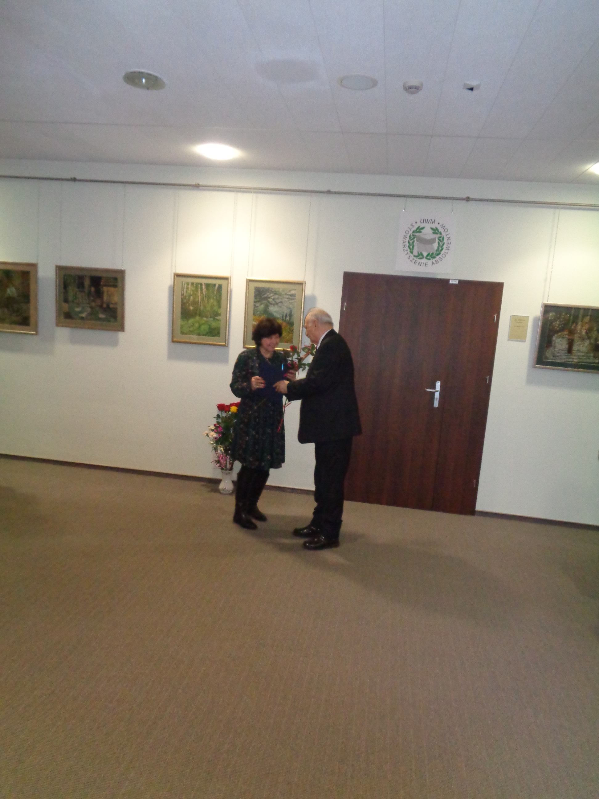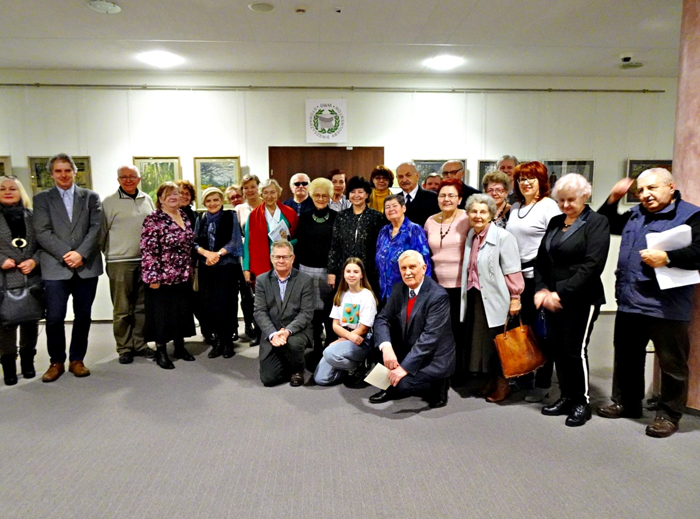Pani Elżbieta Suchowiecka pokazała na wystawie 16 obrazów w tej technice zainspirowanych, zgodnie z tytułem, przez rodzinne fotografie bliskich i przyjaciół z okresu prawie 70 lat. Malarskich inspiracji dostarczają jej podróże, lektura , wspomnienia, dzieła wielkich mistrzów. Artystka brała udział w plenerach, warsztatach, wystawach krajowych i zagranicznych(65). Miała 12 wystaw indywidualnych. Kilkakrotnie była za swoje dzieła nagradzana i wyróżniana w przeglądach i konkursach wojewódzkich i krajowych. Jej ulubione techniki to olej, akryl, batik i rysunek. Na wernisaż 07.02. do Biblioteki przybyło wiele gości, rodzina, bliscy i przyjaciele, zwłaszcza ze Stowarzyszenia Plastyków Amatorów „Sąsiedzi ”, którego pani Elżbieta Suchowiecka jest prezesem. Dr Bolesław Pilarek, prezes Stowarzyszenia Absolwentów UWM, podziękował artystce za piękną wystawę wręczając jej w imieniu Zarządu Stowarzyszenia, AKT UZNANIA za promocję sztuki w środowisku olsztyńskim i uczelnianym.