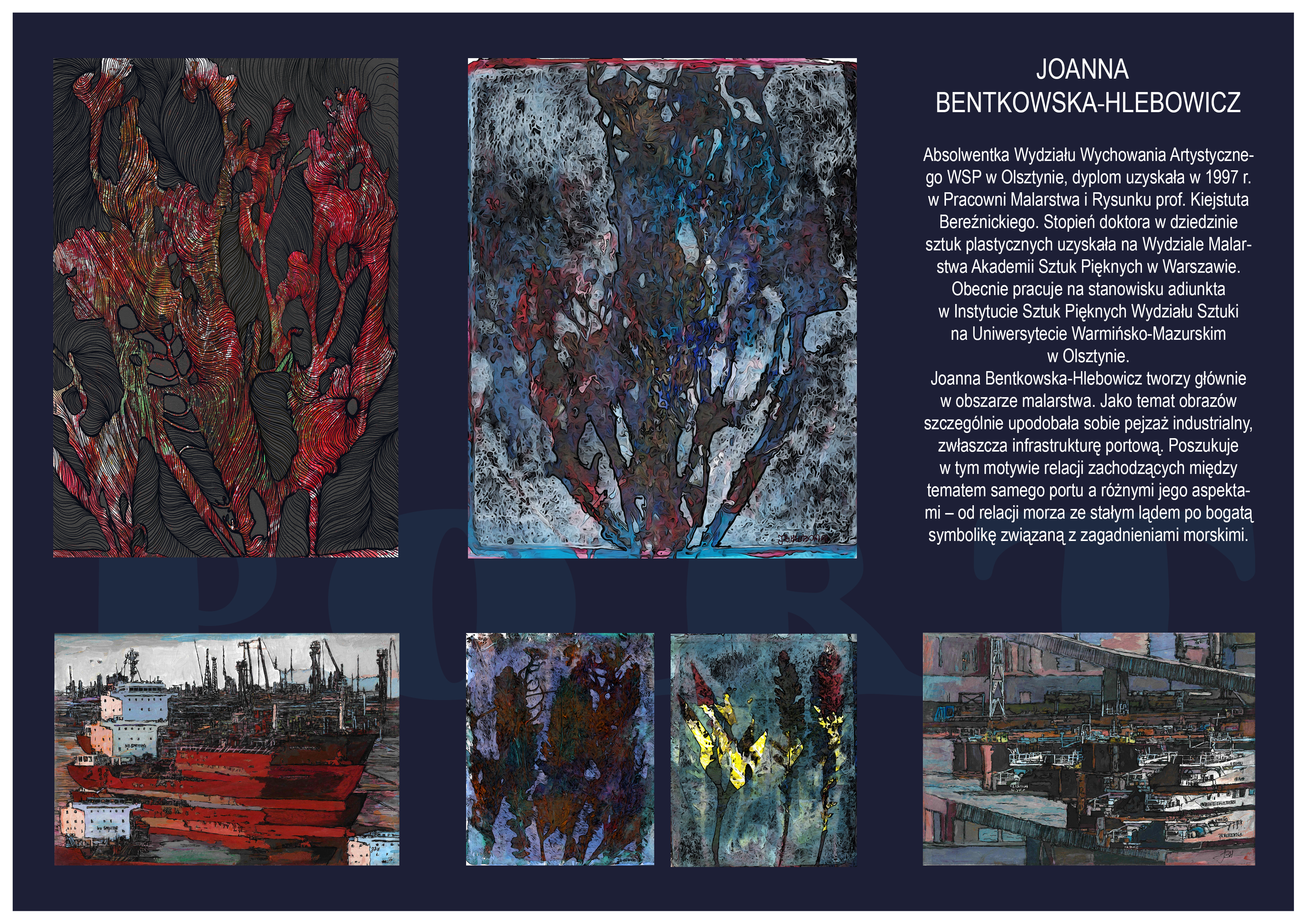 Tu (w Olsztynie) trwa do końca wakacji wystawa dr Joanny Bentkowskiej-Hlebowicz otwarta 6 czerwca br. w Ceik-u w Galerii Parkowej (dawny WDK) pt.: „Portowe opowieści”, na której zaprezentowane zostały 23 obrazy autorki o tematyce portowej wykonane na płótnie. Prace z cyklu „Przestwory” zostały namalowane w ostatnich czterech latach. Należą do obszernego zbioru pt.: „Gdzie Neptun mówi dobranoc”.