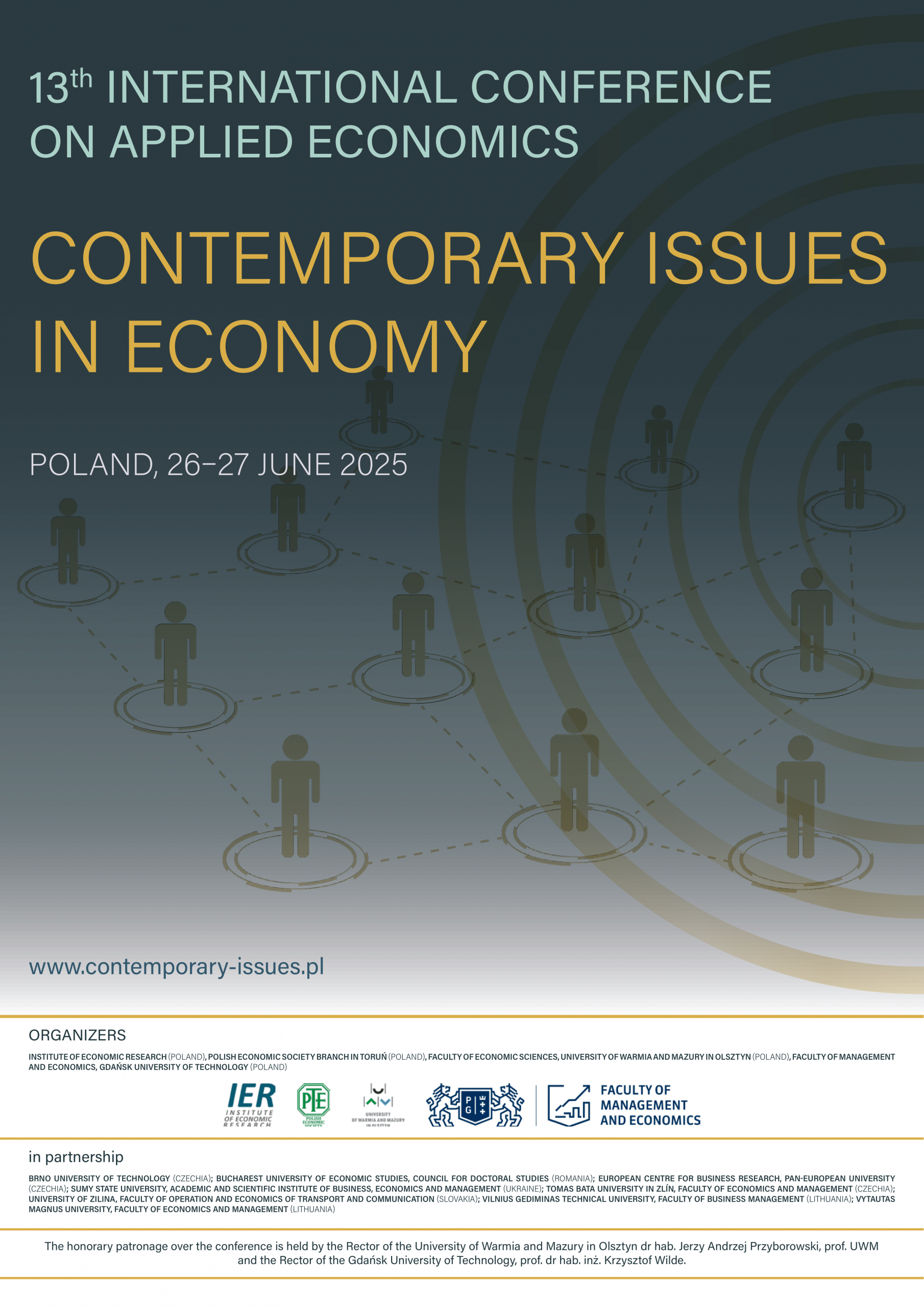 W dniach 26–27 czerwca 2025 odbędzie się 13th International Conference On Applied Economics - Contemporary Issues In Economy w Olsztynie.