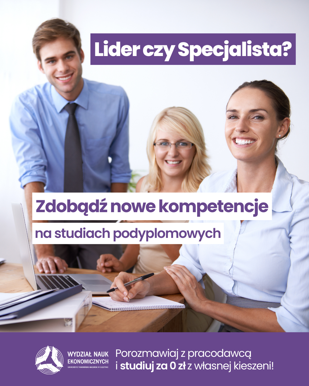 Rynek pracy zmienia się szybciej niż kiedykolwiek wcześniej. Od osób zajmujących stanowiska menedżerskie i specjalistyczne oczekuje się dziś nie tylko wiedzy branżowej, ale przede wszystkim elastyczności, umiejętności podejmowania decyzji w dynamicznym otoczeniu oraz sprawnego poruszania się w świecie cyfrowym. Odpowiedzią na te potrzeby są studia podyplomowe oferowane przez Wydział Nauk Ekonomicznych Uniwersytetu Warmińsko-Mazurskiego w Olsztynie, realizowane w ramach rekrutacji śródrocznej.