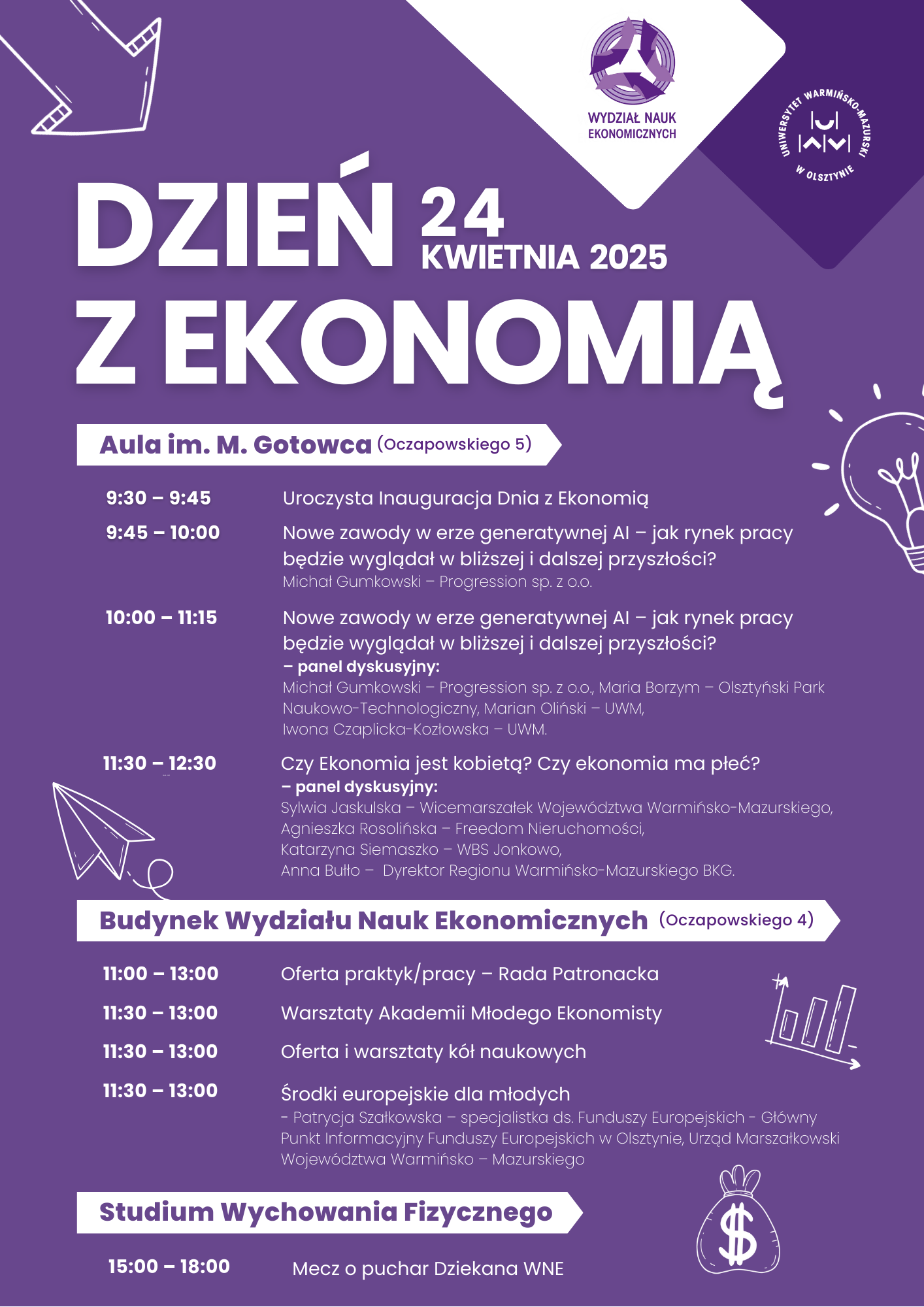 Zapraszamy do udziału w k olejnej edycji naszego wydziałowego święta – Dnia z Ekonomią, który odbędzie się 24 kwietnia 2025 roku.
