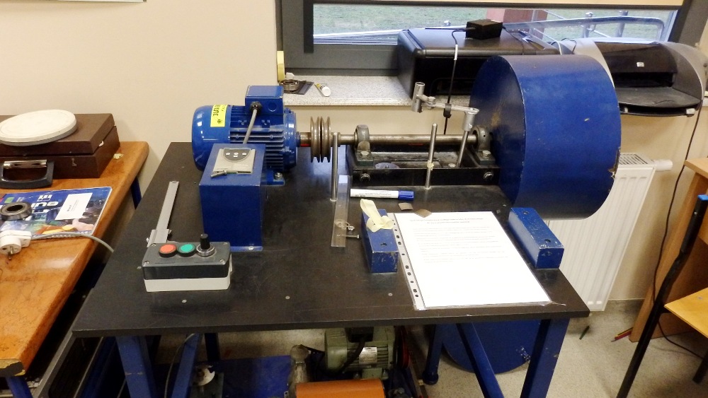 Badania drgań na stanowiskach laboratoryjnych. Wyznaczanie częstotliwości drgań własnych. Laserowe ustawianie przekładni pasowych. Wyważanie układów wirnikowych w łożyskach własnych i części na wyważarce stacjonarnej. Badania termowizyjne zespołów maszyn.