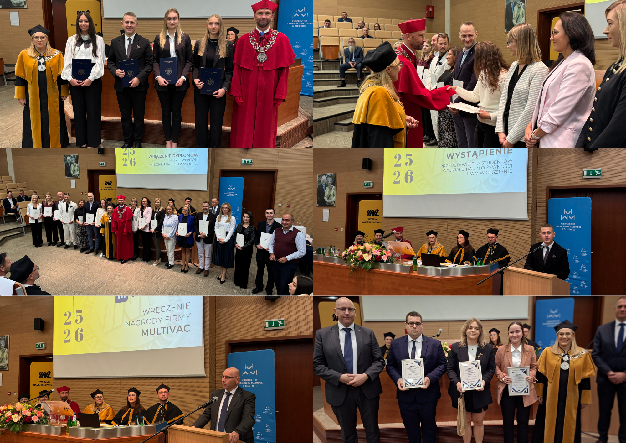 Szczególnym momentem było wręczenie dyplomów Absolwentom rocznika 2024/2025. Uhonorowano także absolwentów wyróżniających się wysokimi wynikami w nauce oraz aktywnością na rzecz społeczności akademickiej wydziału i uczelni. Emocji nie zabrakło również podczas ogłoszenia laureatów konkursów współorganizowanych przez partnerów Wydziału: MULTIVAC, ZENTIS i ECOLAB. Tegorocznym finalistom poświęcimy osobny materiał.