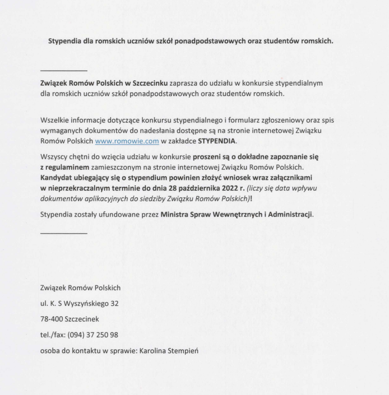 STYPENDIA DLA STUDENTÓW ROMSKICH