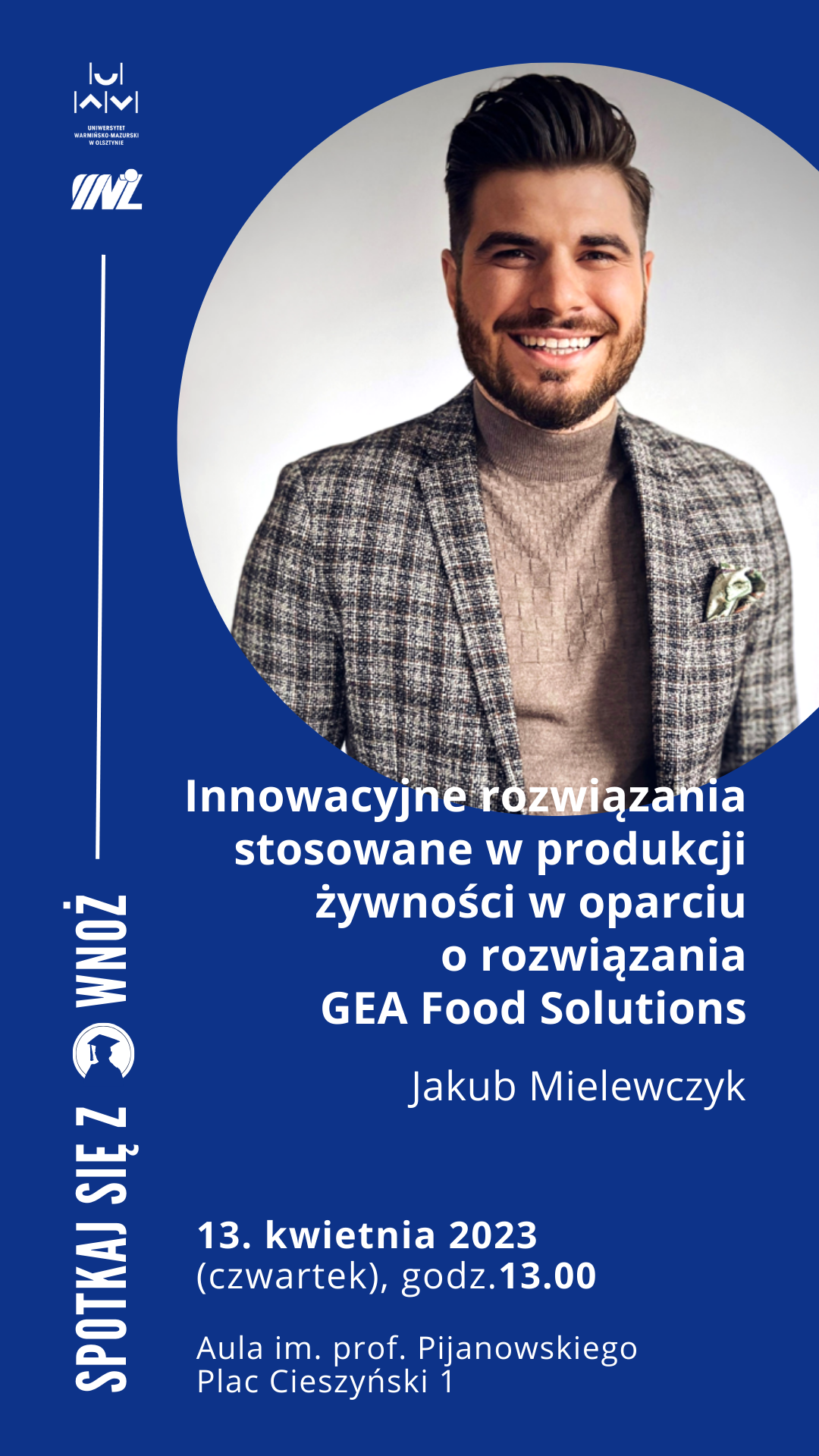 Prelegentem będzie Absolwent Wydziału Nauki o Żywności sprzed kilku lat, Pan mgr inż. Jakub Mielewczyk.