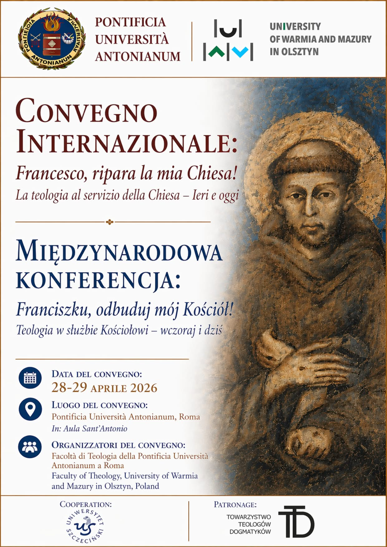Międzynarodowa konferencja Międzynarodowa konferencja:Franciszku, odbuduj mój Kościół! Teologia w służbie Kościołowi – wczoraj i dziś28-29 kwietnia 2026Program
