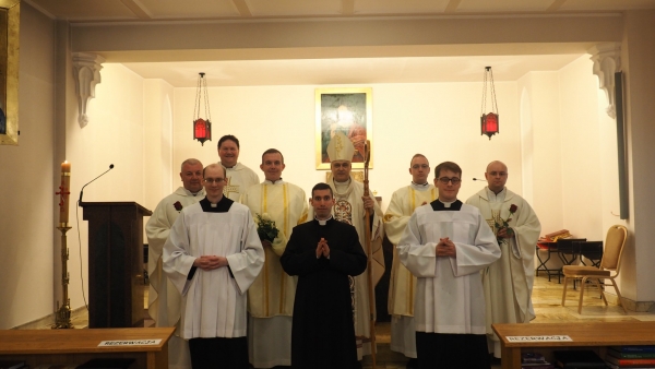 na zdjęciu: kleryk Karol w dniu przyjęcia sutanny, 2022 r. kaplica seminaryjna w Elblągu