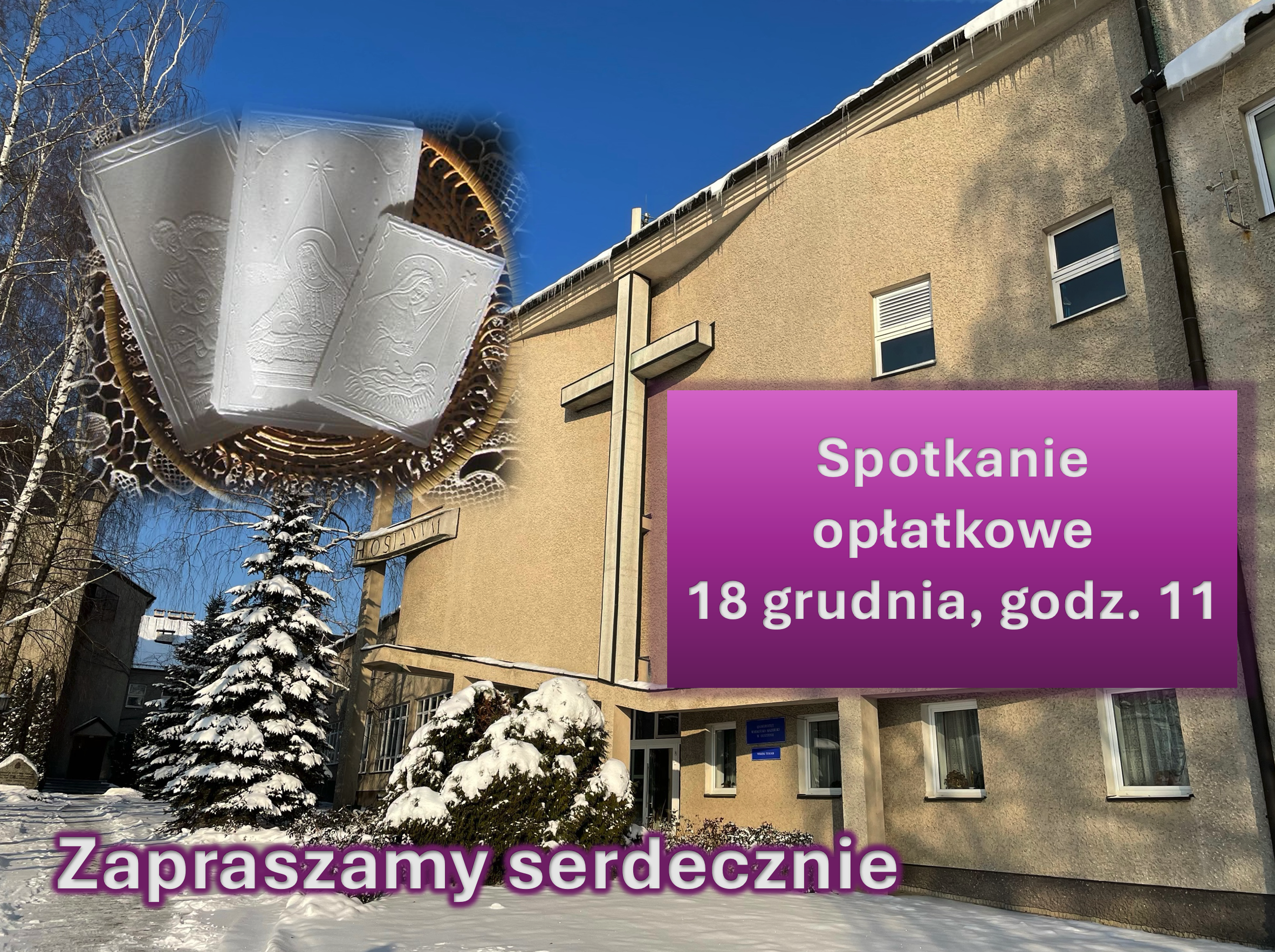 Spotkanie opłatkowe Zapraszamy wszystkich pracowników i studentów Wydziału Teologii UWM w Olsztynie na spotkanie opłatkowe, które odbędzie się w dniu 18 grudnia (czwartek) o godz. 11.00 w sali nr 8.