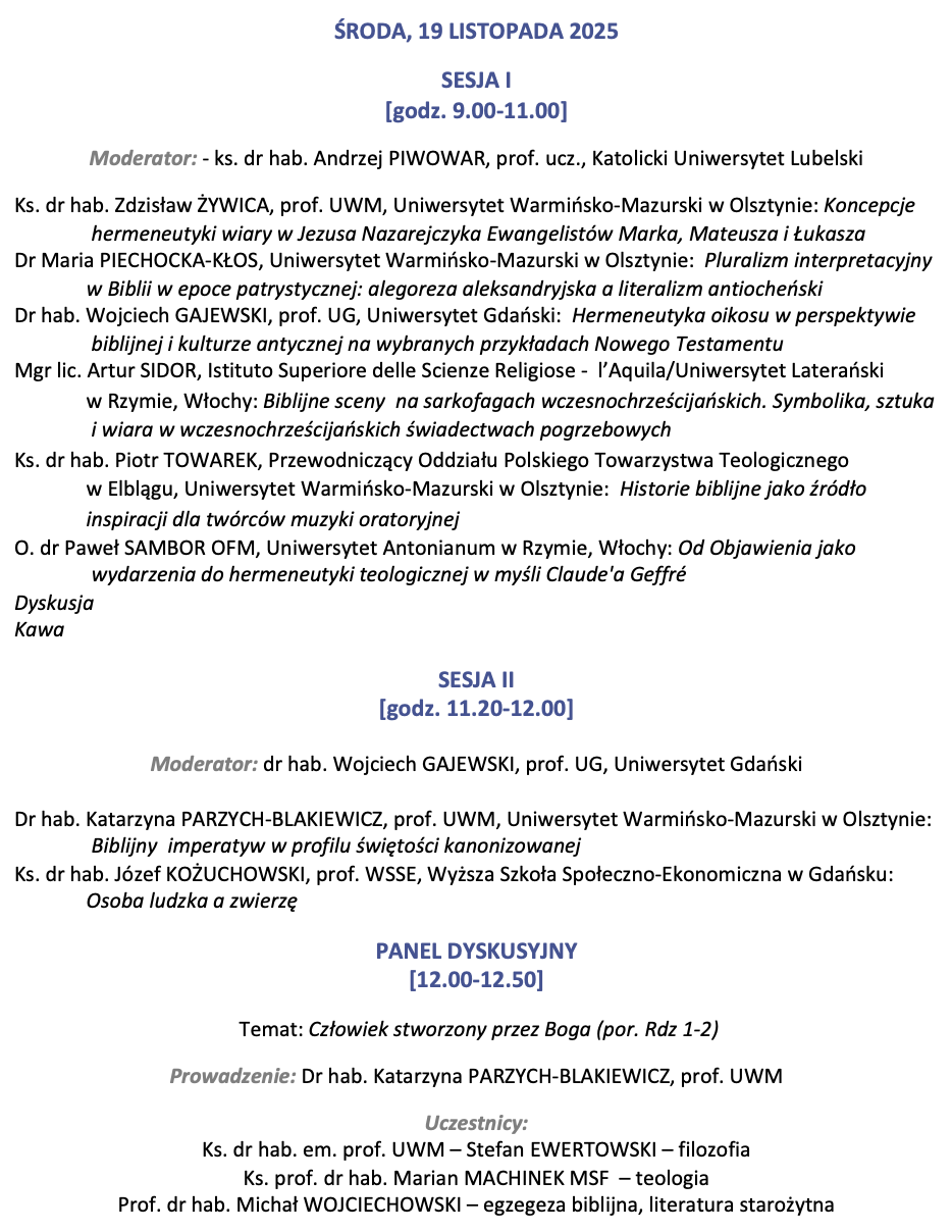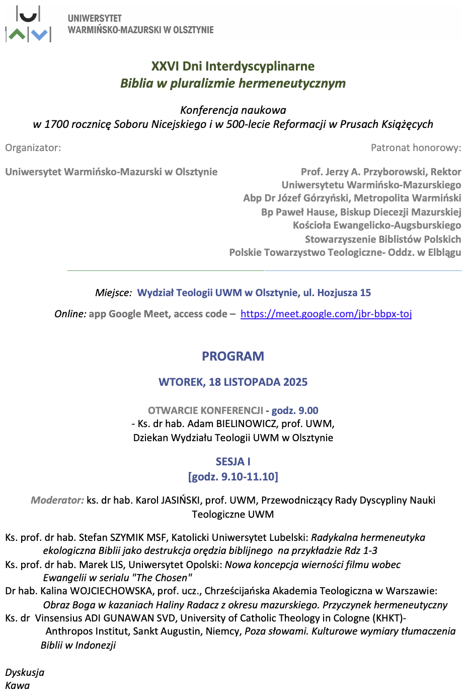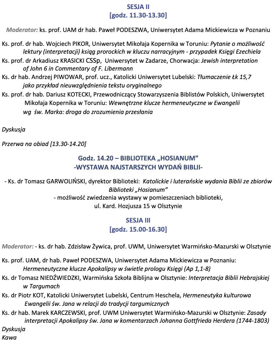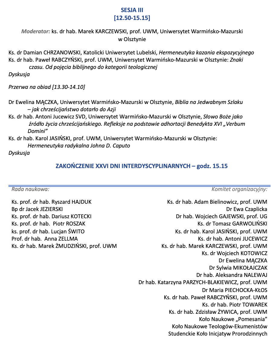XXVI Dni Interdyscyplinarne "Biblia w pluralizmie hermeneutycznym" Zapraszamy do galerii zdjęć Informacja na stronie archidiecezji warmińskiejPlakat XXVI Dni Interdyscyplinarnych