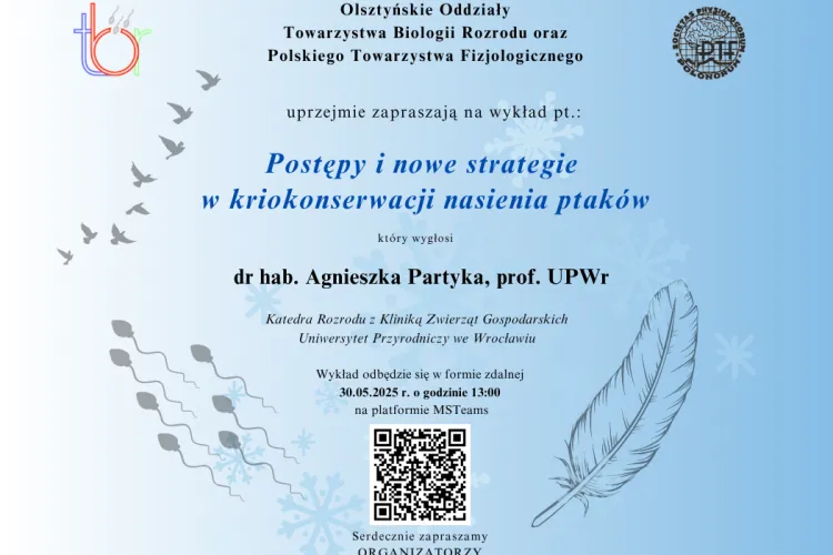 Olsztyńskie oddziały Towarzystwa Biologii Rozrodu oraz Polskiego Towarzystwa Fizjologicznego zapraszają na wykład online, który wygłosi prof.…