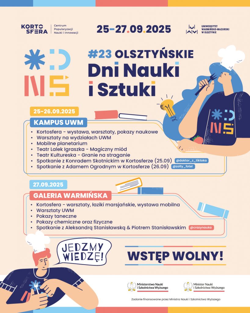 23. Olsztyńskie Dni Nauki i Sztuki potrwają od 25 do 27 września. Zapraszamy również do wysłuchania wywiadu z Mateuszem Pikulińskim, dyrektorem Kortosfery, która będzie gospodarzem wydarzenia.