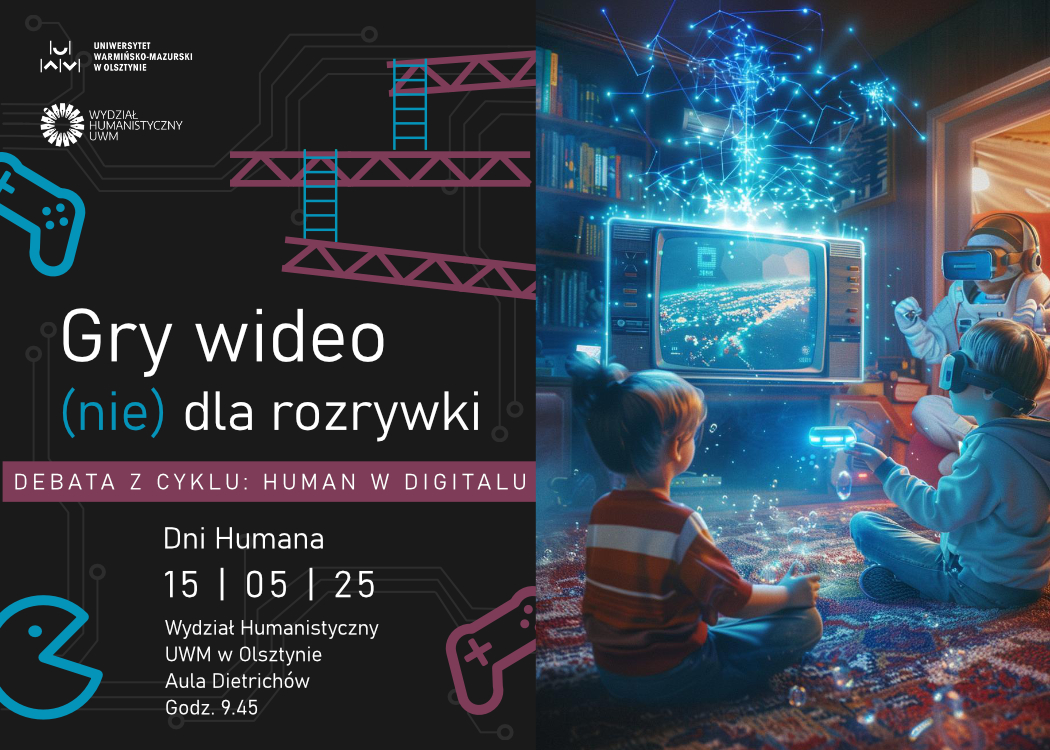 „Human w Digitalu" to cykl debat o roli, znaczeniu i funkcjach coraz nowszych mediów cyfrowych i mobilnych, które nas otaczają i angażują niemal bez reszty. Tym razem w trzeciej odsłonie cyklu pod hasłem „Gry wideo (nie) dla rozrywki" przyglądamy się grom wideo. Obecnie są one czymś więcej niż tylko źródłem zabawy i dostarczycielami rozrywki. Coraz częściej pełnią funkcje prospołeczne, obywatelskie, a nawet symulacyjne. Kształtują postawy, przekazują wartości i pozwalają przećwiczyć scenariusze związane z bezpieczeństwem. Czy jednak ich wpływ na użytkowników zawsze jest pozytywny? Czy mogą zmieniać sposób myślenia, inspirować do działania, a może uzależniać? To tylko niektóre z kwestii, jakie zostaną poruszone podczas trzeciej odsłony z cyklu debat „Human w Digitalu".