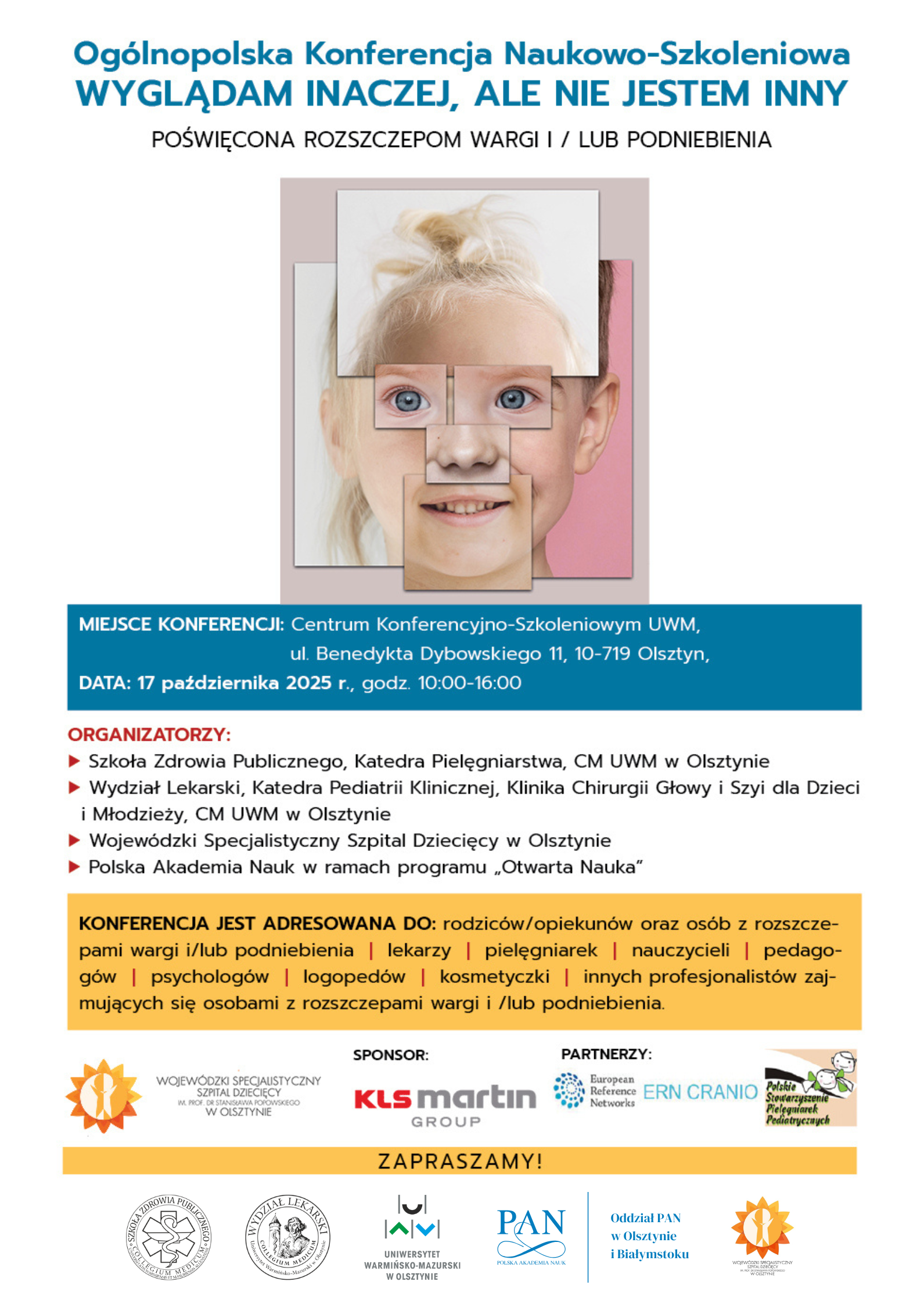 Rozszczepy wargi i/lub podniebienia to najczęściej występujące wrodzone zaburzenia w obrębie twarzoczaszki. Konferencja ma na celu upowszechnianie aktualnej, interdyscyplinarnej wiedzy medycznej, psychologicznej i społecznej dotyczącej opieki nad dzieckiem i osobą dorosłą z rozszczepem. Leczenie tego rodzaju wad to proces wieloetapowy i wieloletni, który wymaga zaangażowania wielu specjalistów oraz wrażliwości i zrozumienia ze strony otoczenia.