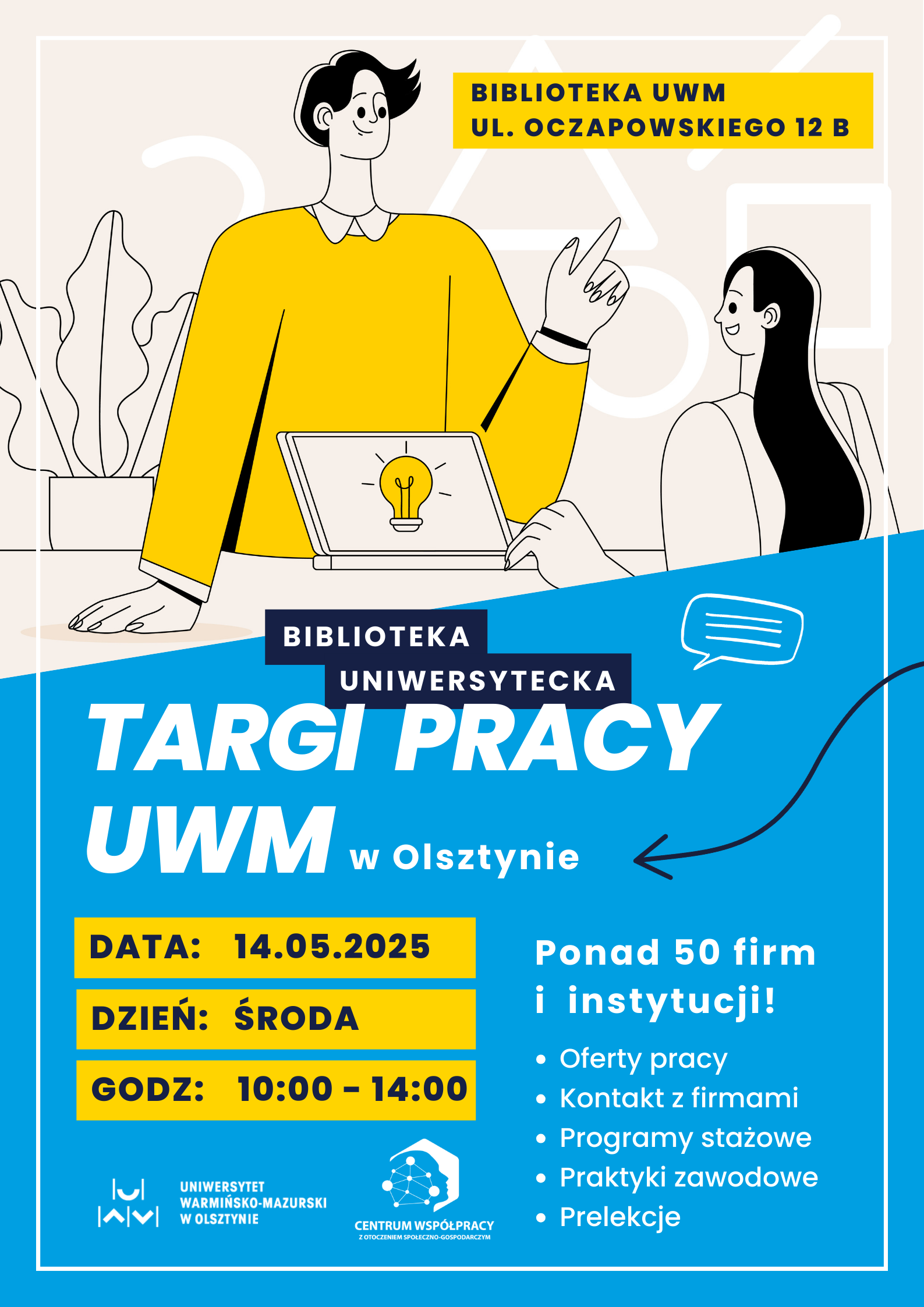 Po raz trzeci z rzędu Biblioteka UWM stanie się przestrzenią do spotkań z pracodawcami i przedstawicielami różnorodnych branż oraz do rozmów o przyszłości zawodowej i trendach na rynku pracy.