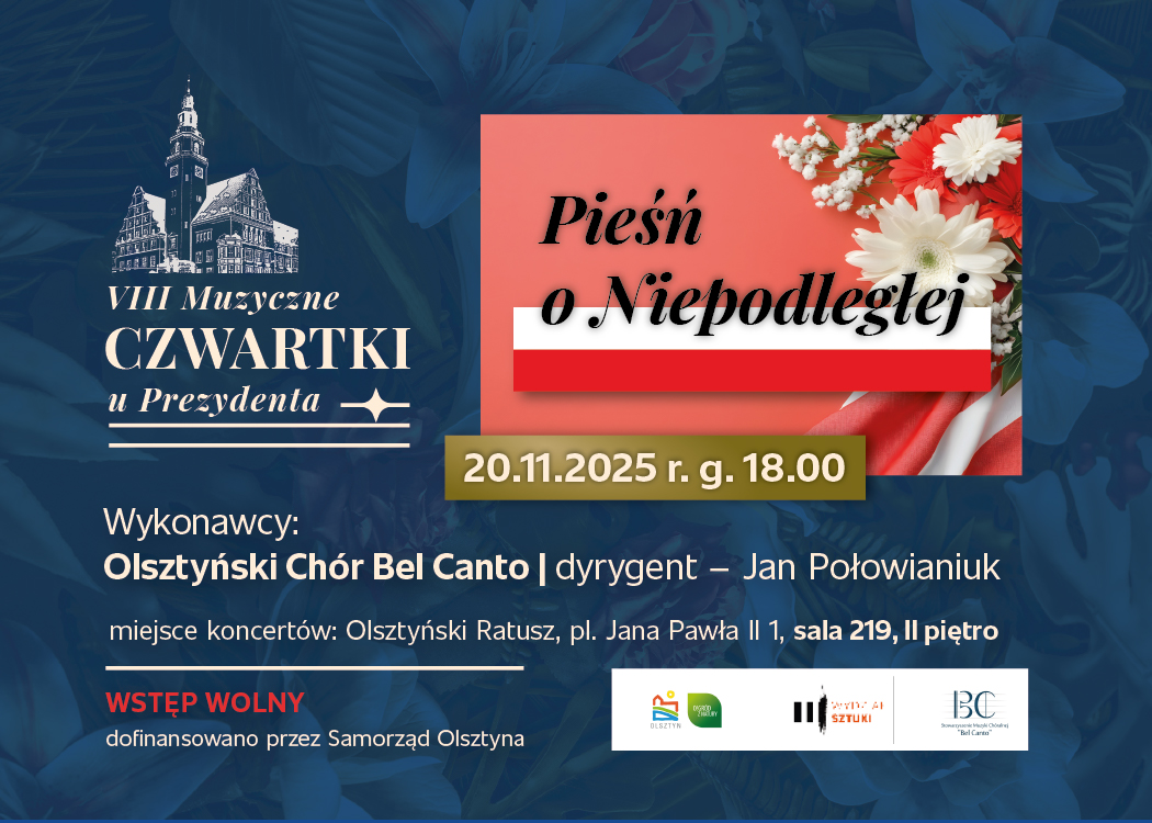 Olsztyński Chór Bel Canto zaprasza na koncert w ramach ósmej edycji cyklu „Muzyczne Czwartki u Prezydenta”.