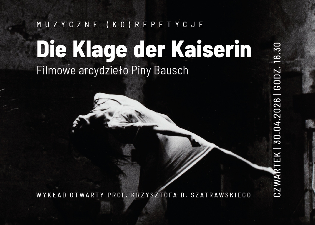 Nad czym lamentuje cesarzowa? Czy jej łzy mogą nam pomóc? Dokonania, dzięki którym Pinę Bausch obdarzono mianem Cesarzowej niemieckiego i światowego teatru tańca, kariera artystyczna tancerki i choreografki, spektakle działającego w Wuppertalu zespołu i wypracowane z nim metody pracy, wszystko to złożyło się na zjawisko unikalne. Miłośnicy jej sztuki wiedzą, że wypowiadała się także w formie filmu baletowego. Jej pełnometrażowy film „Die Klage der Kaiserin” (Lament cesarzowej) to integralna wypowiedź artystyczna, w której z krótkich, luźno ze sobą powiązanych, a czasami surrealistycznie zestawionych scen, wyłania się obraz wyobcowania, samotności, tęsknoty, poszukiwania miłości i niemożności spełnienia. Są to również główne wątki tematyczne teatru Piny Bausch. Organizatorzy spotkania zachęcają do spróbowania zmierzenia się z tym dziełem, które powinno się odbierać jak poezję, w której zamiast słów, przemawiają obrazy ciała w ruchu. Przekonują, że warto się przekonać, jak wiernie współczesny taniec odzwierciedla nasze potrzeby i lęki.