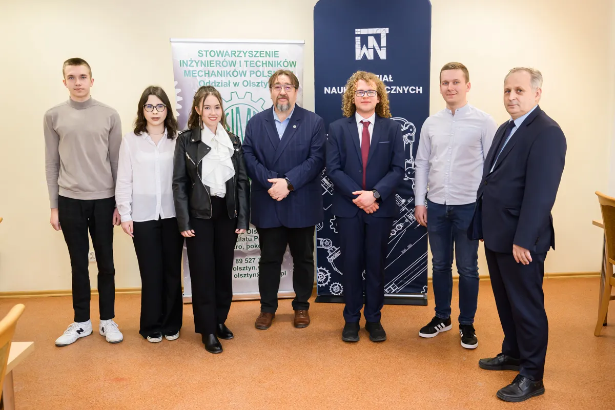 Tego dnia nie tylko pierwszoroczni studenci zostali docenieni. SIMP co roku organizuje na szczeblu oddziałowym i ogólnopolskim konkurs na najlepszą pracę dyplomową o profilu mechanicznym (obronioną w uczelniach technicznych). W tym roku wyróżnieni zostali za pracę inżynierską: Marcin Koszewicz – „Projekt i wykonanie modelu magazynu wysokiego składowania wykorzystującego system RFID” (promotor - dr inż. Konrad Nowak) oraz Mateusz Żbikowski – „Projekt brony talerzowej składanej hydraulicznie” (promotor - dr inż. Jerzy Domański, prodziekan ds. kształcenia WNT). Trzecim nagrodzonym był Łukasz Dziubiński, absolwent Wydziału Nauk Technicznych UWM, a obecnie student Szkoły Doktorskiej. Zajął on I miejsce w XXV edycji Ogólnopolskiego Konkursu Stowarzyszenia Inżynierów i Techników Mechaników Polskich za pracę magisterską pt. „Projekt, analiza teoretyczna i badania systemu do podgrzewania wody w przydomowym basenie stelażowym”.