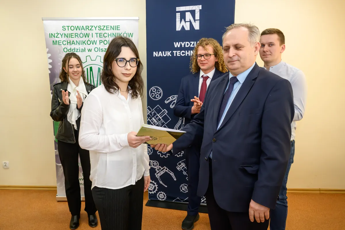 W tym roku wyjątkowo nikt się nie zgłosił z kierunku energetyka. Nagrody wręczyli dr hab. inż. Sławomir Wierzbicki, dziekan Wydziału Nauk Technicznych oraz dr Wojciech Miąskowski. W uroczystości udział wziął także mgr inż. Jerzy Macek, honorowy prezes oddziału SIMP.