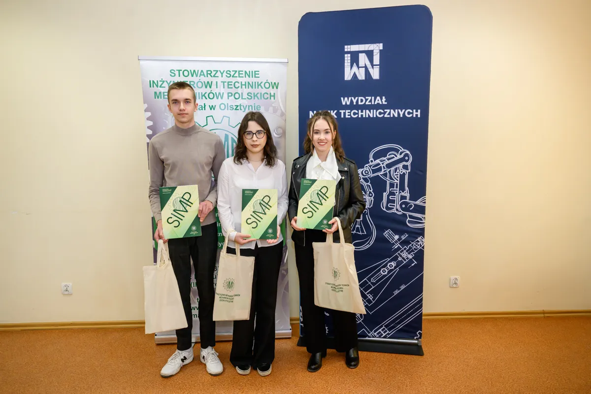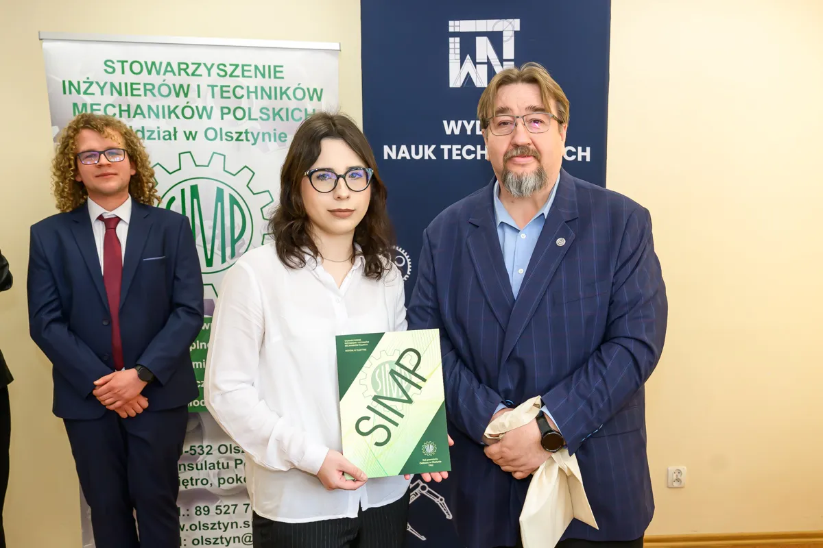 Nagrody Stowarzyszenia Inżynierów i Techników Mechaników Polskich (SIMP) to prestiżowe wyróżnienia dla inżynierów, techników i studentów za osiągnięcia techniczne, innowacyjne prace dyplomowe oraz wyniki w nauce. Od pięciu lat na mocy porozumienia z Uniwersytetem Warmińsko-Mazurskim olsztyński oddział Stowarzyszenia Inżynierów i Techników Mechaników Polskich przyznaje najlepszym studentom pierwszego roku nagrodę prezesa oddziału w wysokości 1500 zł. Tegoroczni laureaci to: Maja Zyśk (mechatronika), Igor Zalewski (Mechanika i Budowa Maszyn) oraz Agata Szumilak (Inżynieria w logistyce). Wszyscy osiągnęli w I semestrze studiów średnią powyżej 4,5.