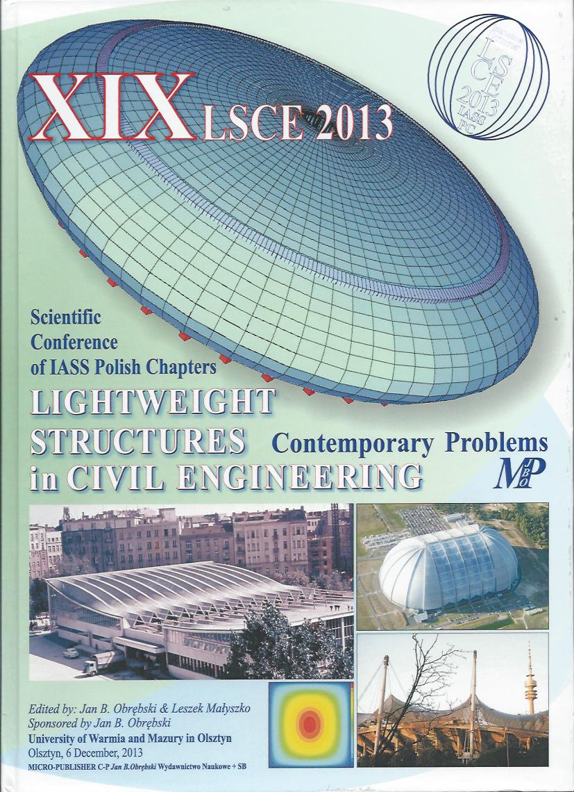 3. Obrębski J. and Małyszko L. (Eds): Lightweight Structures in Civil Engineering. Micro-Publisher C-P, Warszawa-Olsztyn 2013. Micro-Publisher C-P Jan B. Obrębski Wydawnictwo Naukowe + Studio Budowlane. ISBN-13: 978-83-924884-8-4. Autorstwo rozdziałów: