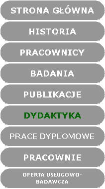 Cytogenetyka (dla biologii molekularnej) Cytogenetics Konwersatorium specjalnościowe w j. angielskim Metodologia nauk przyrodniczych Methodology of natural sciences Metody rekonstrukcji filogenezy (dla biologii środowiskowej) Phylogeny reconstruction methods Modelowe organizmy w biologii molekularnej (dla biologii molekularnej) Model organisms of molecular biologyPracownia biologii organizmów (dla biologii środowiskowej) Biology of the organisms – Classis Seminarium magisterskie Zwierzęta i ich siedliska Animals and their habitat