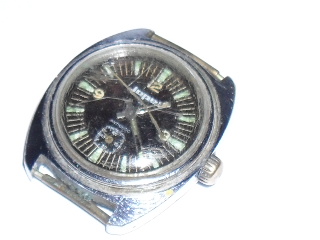Przypomniałem sobie o starym zegarku naręcznym, który dawno, dawno temu dostałem w prezencie od rodziców (ponad 30 lat temu!). Moja mama szczęśliwie przechowała go wśród pamiątek z dawnej epoki. Ten brytyjskiej produkcji chronometr był wodoodporny i co najważniejsze - miał świecące w ciemności wskazówki i oznaczenia godzin. W tamtych czasach do farb fluorescencyjnych dodawano pobudzające związki promieniotwórcze - które powinny zostać wykryte przez mój detektor :) Niestety, w dzieciństwie z zegarkiem obszedłem się dość surowo - szkiełko jest mocno popękane, a farba święcąca odpadła z cyferblatu i wskazówek zostawiając tylko wątłe ślady swojej obecności. Poniżej zdjęcie zegarka i resztek luminescencji po długim naświetlaniu ultrafioletem.