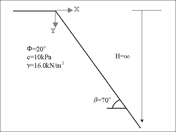 Oznaczenia w programie: a=0°, b=70°, F =20°, c=10kPa, g=16 kN/m3, H=5.19m.