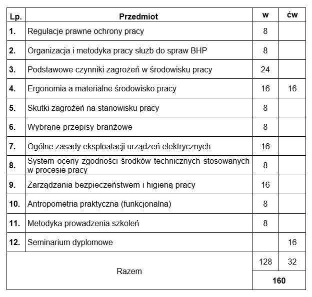 BEZPIECZEŃSTWO I HIGIENA PRACY Z ELEMENTAMI ERGONOMII Plan studiów podyplomowych •Informacje ogólne •Program studiów •Rodzaj i czas trwania •Rekrutacja •Kontakt