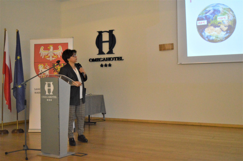 Na konferencji została poruszona między innymi tematyka jakości życia w sferze ekologicznej, którą szczegółowo przedstawiła Pani prof. dr hab. Katarzyna Glińska-Lewczuk kierownik naszej Katedry. Pani Profesor zaprezentowała m.in. wpływ zmian klimatu na zasoby i gospodarkę wodną Warmii i Mazur, zagrożenie suszą w rolnictwie oraz oddziaływanie zmian klimatu na stan zdrowia społeczeństwa naszego regionu.