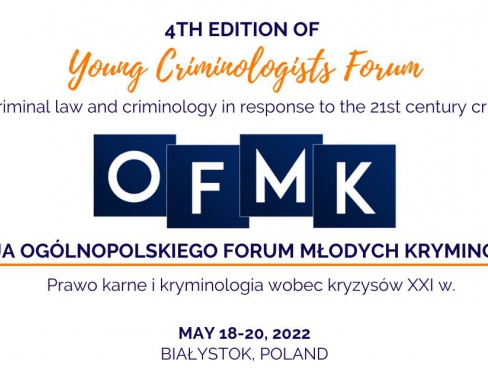 30/10/2021Katedra Prawa Karnego i Kryminologii Wydziału Prawa Uniwersytetu w Białymstoku zaprasza zarówno młodych, jak i doświadczonych kryminologów do udziału w IV edycji Ogólnopolskiego Forum Młodych Kryminologów. Konferencja odbędzie się w dniach 18-20 maja 2022 r.