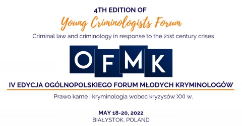 Katedra Prawa Karnego i Kryminologii Wydziału Prawa Uniwersytetu w Białymstoku zaprasza zarówno młodych, jak i doświadczonych kryminologów do udziału w IV edycji Ogólnopolskiego Forum Młodych Kryminologów. Konferencja odbędzie się w dniach 18-20 maja 2022 r. w Białymstoku pod hasłem "Prawo karne i kryminologia wobec kryzysów XXI w.". Zgłoszenia za pośrednictwem formularza: https://forms.gle/djgCPFQPzrLrg3zY9.