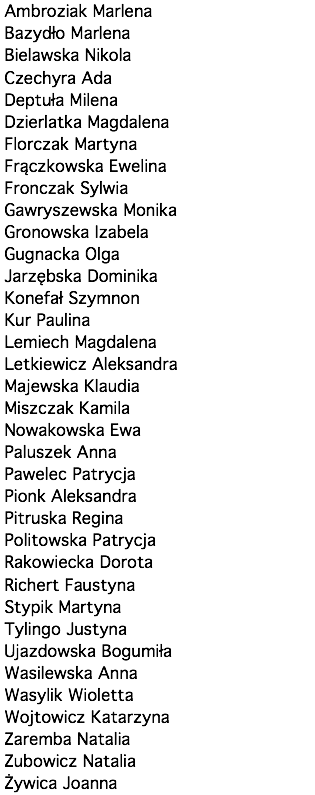 •brak danej osoby na poniższej liście obliguje do przystąpienia do zaliczenia materiału z wykładów w dniu 20 stycznia, o godz. 12:15