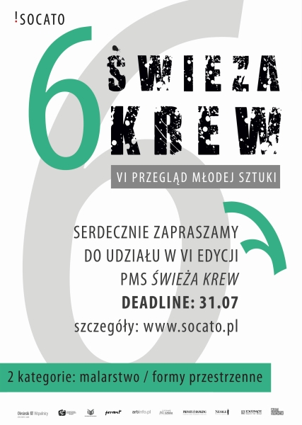 Serdecznie zapraszamy do udziału w VI Przeglądzie Młodej Sztuki „ŚWIEŻA KREW". Przegląd to ogólnopolski konkurs dla absolwentów studiów magisterskich z 2015/16 r. wyższych uczelni artystycznych połączony z wystawą pokonkursową. Przegląd jest szansą na udział w ciekawej zbiorowej wystawie, w gronie rówieśników, w dobrym miejscu z życzliwą i otwartą publicznością. I jest naprawdę świeży! Wystawa już we wrześniu, na otwarcie nowego sezonu.