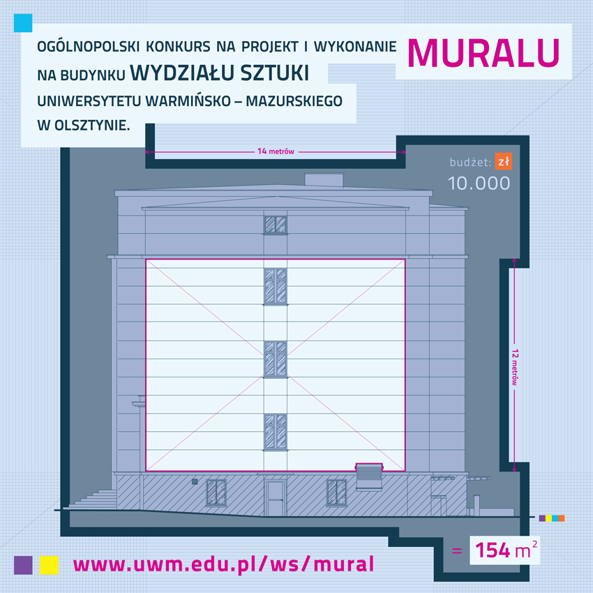2. Przedmiotem Konkursu jest projekt i wykonanie muralu na północnej ścianie budynku Wydziału Sztuki przy ulicy Feliksa Szrajbera 11 w Olsztynie.