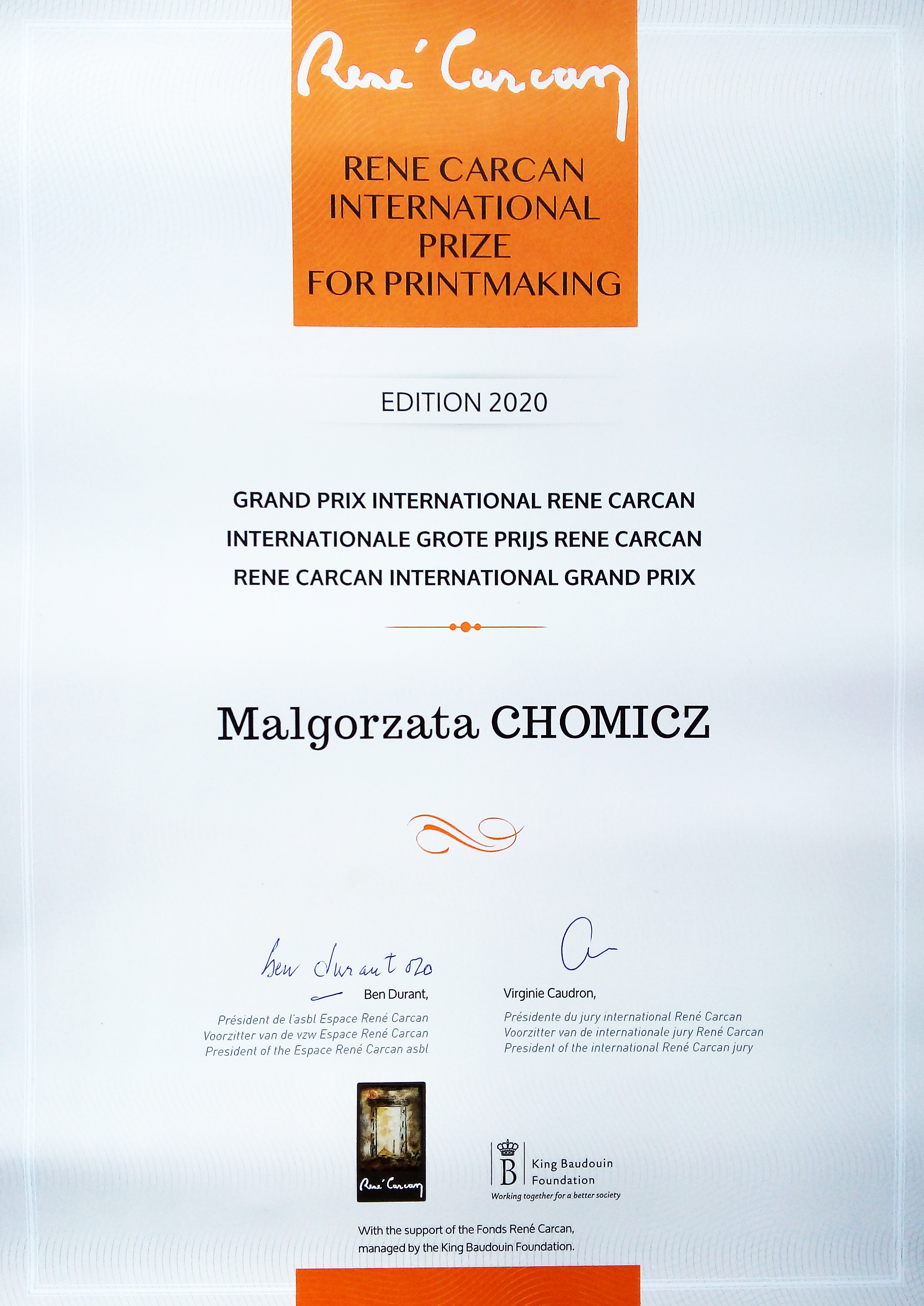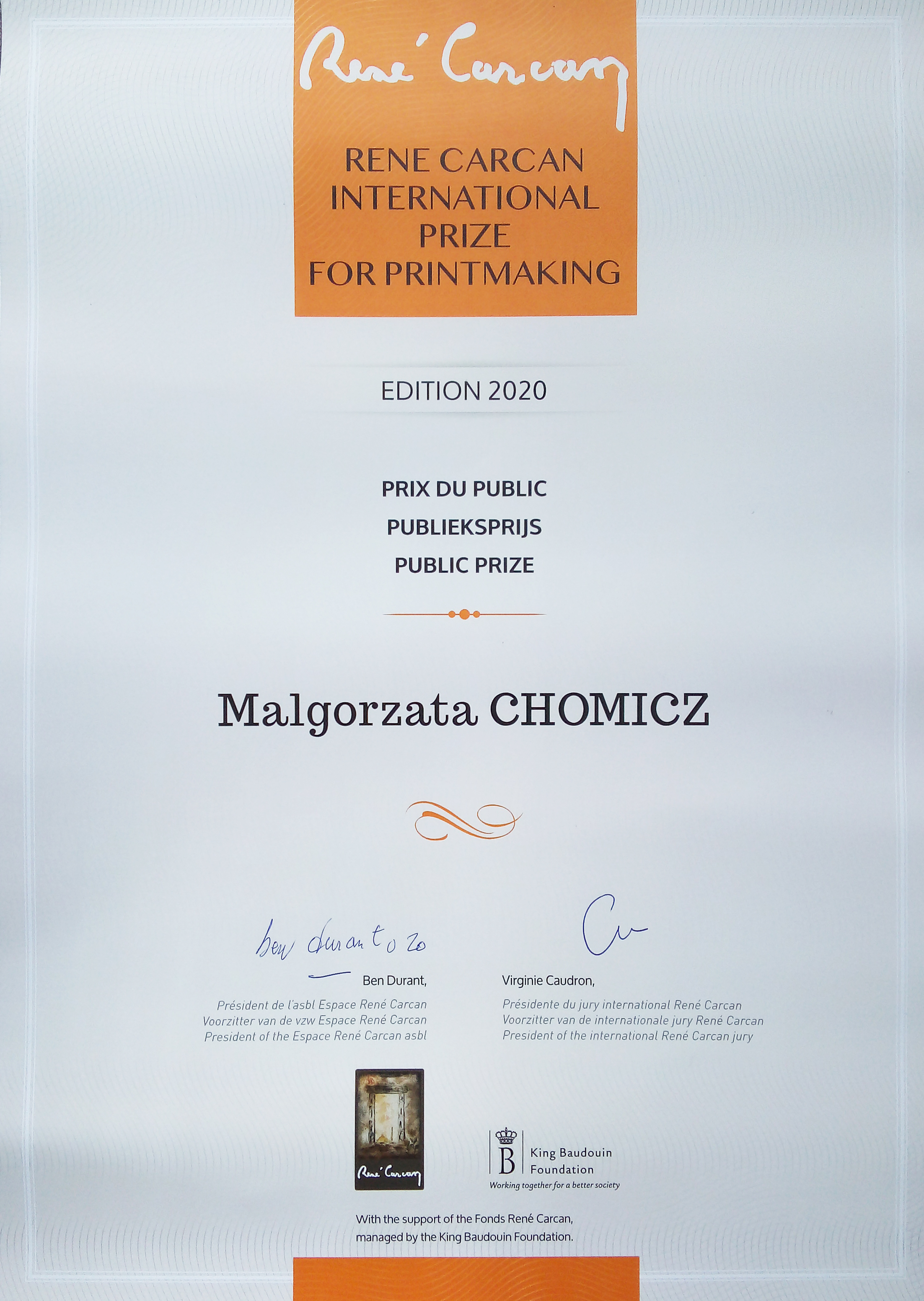 International Prize for Printmaking (Bruksela,Belgia) pod patronatem Fundacji Króla Belgii Roi Baudouin - nagroda dla dr hab. Małgorzaty Chomicz, prof. UWM.
