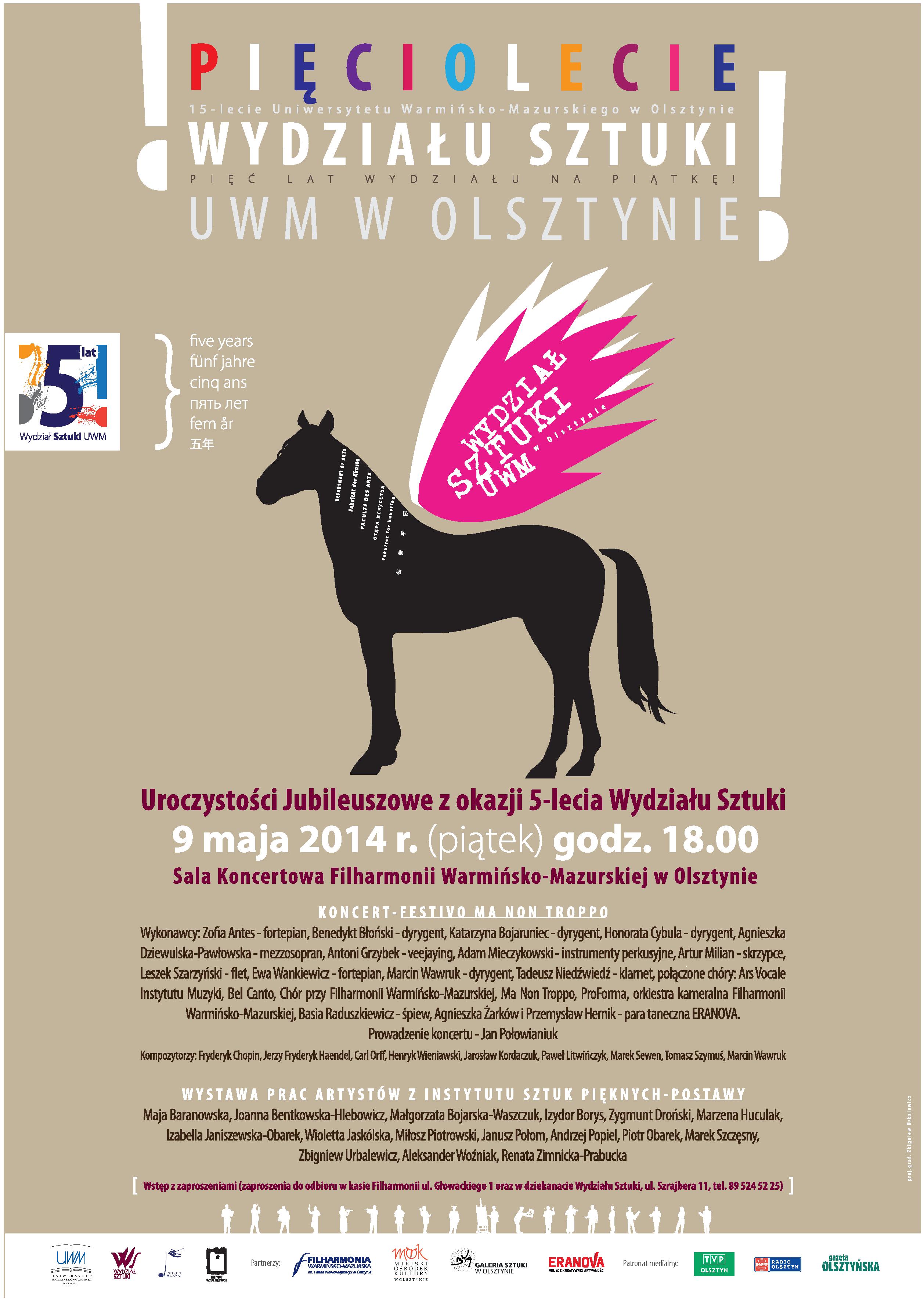 Uroczystości pięciolecia Wydziału Sztuki w Filharmonii Warmińsko-Mazurskiej 9 maja 2014 o godz. 18.00