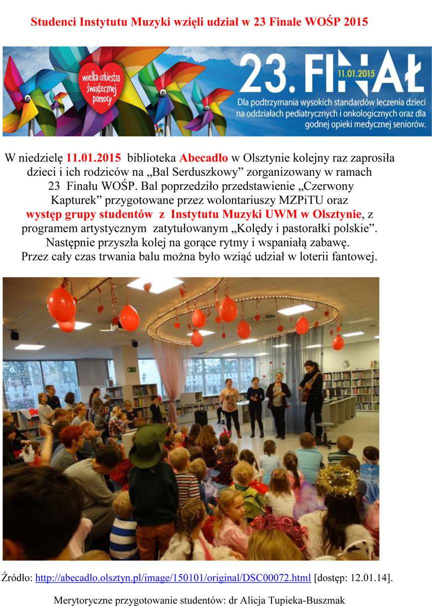 Studenci z Instytutu Muzyki w 23 Finale Wielkiej Orkiestry Świątecznej Pomocy
