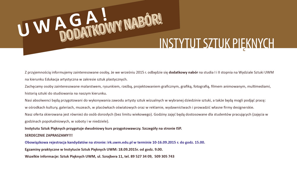 Dodatkowy nabór na studia w Instytucie Sztuk Pięknych
