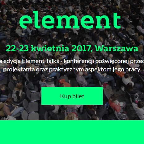 Już za kilka dni rusza kolejna edycja ELEMENT TALKS. W imieniu organizatorów zapraszamy do wzięcia udziału w największej konferencji na temat szeroko pojętego projektowania.