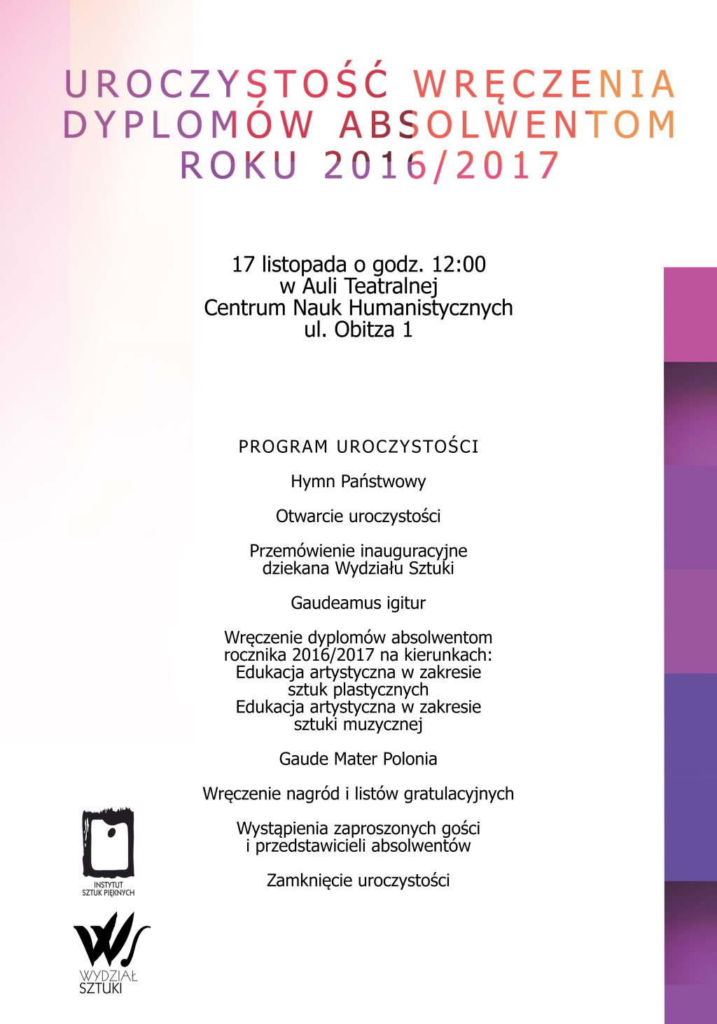 Uroczystość wręczenia dylomów jest ważnym wydarzeniem dla Wydziału Sztuki. Absolwenci spędzają długie godziny nad wykonaniem swojego dyplom dlatego jeszcze większą radość sprawia otrzymanie dokumentu potwierdzającego ciężką pracę wykonaną podczas całej edukacji na studiach. W tym roku wyróżnienie za najlepszy dyplom otrzymał w Instytucie Sztuk Pięknych Pan Łukasz Oleszczuk wykonując animację do utworu Nienasycenie feat. Natalia Grosiak. Dyplom został wykonany w pracowni dr hab. Antoniego Grzybka.