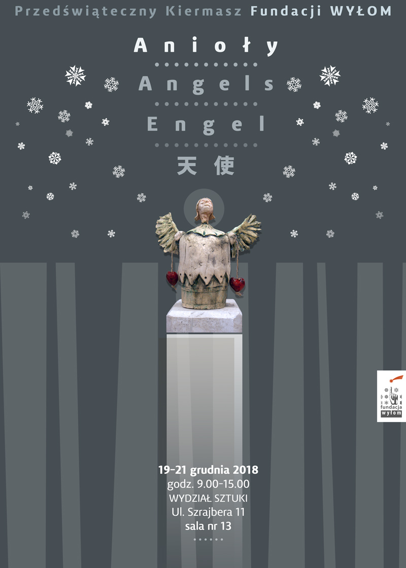 Zapraszamy na Wydział Sztuki! W dniach od 19 -21 grudnia w godzinach 9.00-15.00 w sali 13 przy ul. Szrajbera 11, będzie można nabyć wyjątkowe i niepowtarzalne ceramiczne anioły. Przedświąteczny Kiermasz jest organizowany przez Fundację Wyłom. Wyłom się! Kup prezent pod choinkę!
