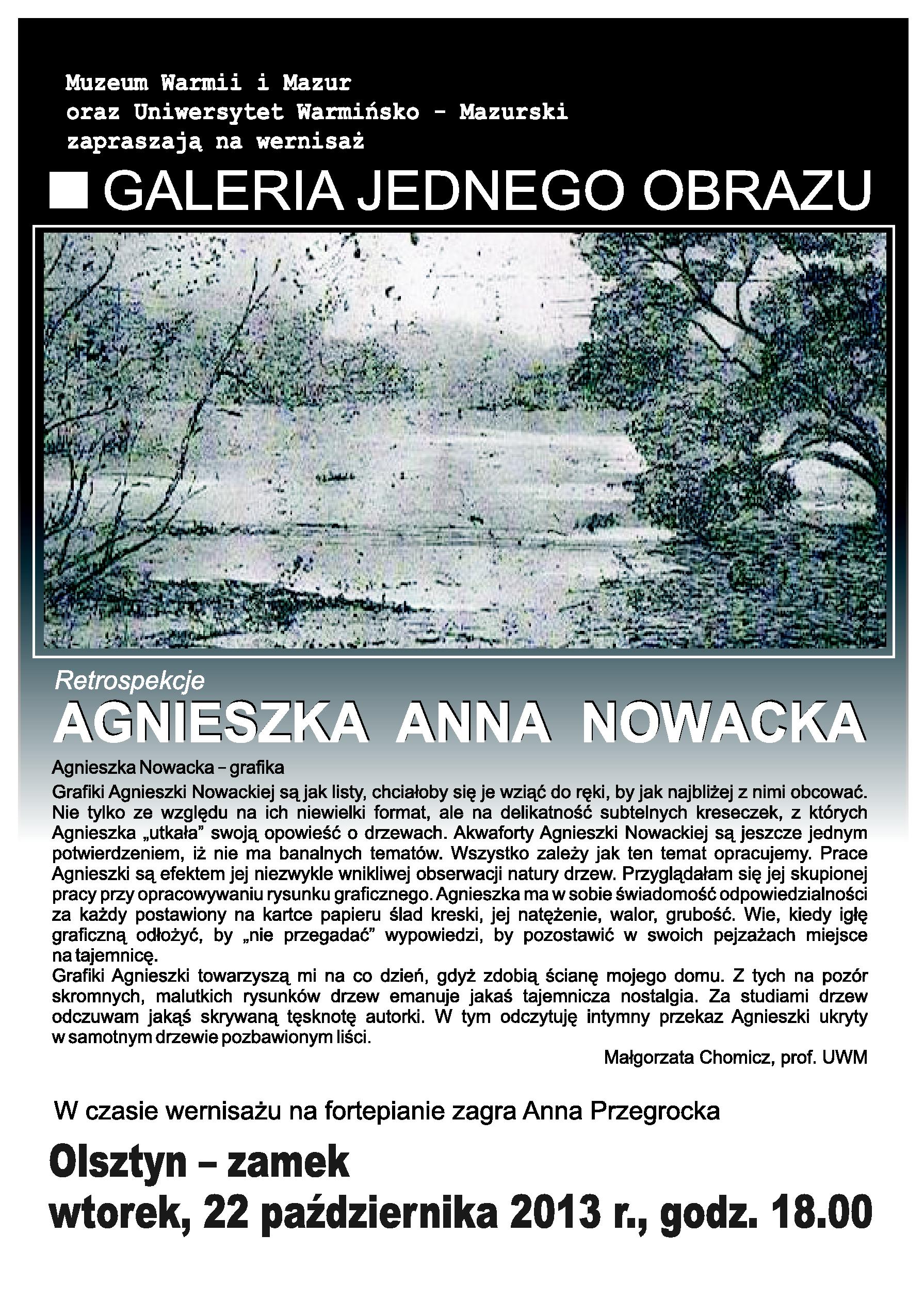 wystawa grafiki Agnieszki Nowackiej "Retrospekcje" w Galerii Jednego Obrazu Muzeum Warmii i Mazur