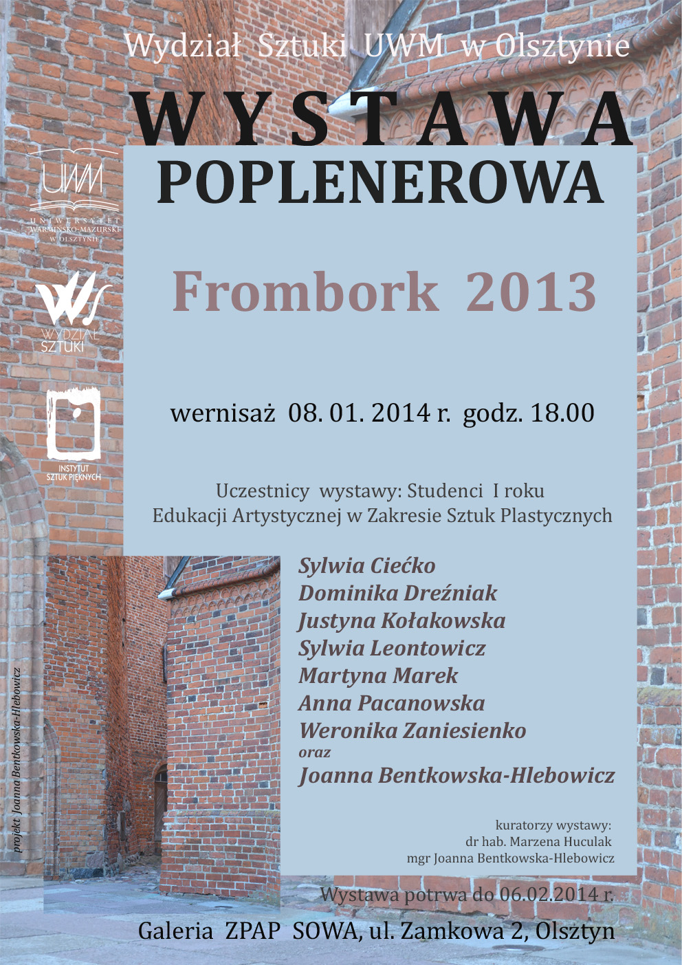 Pod opieką artystyczną dr hab Marzeny Huculak i mgr Joanny Bentkowskiej-Hlebowicz studenci I roku I stopnia Edukacji Artystycznej w zakresie sztuk plastycznych mieli możliwość malowania na terenie miasteczka, a dzięki uprzejmości ks. dr Jacka Wojtkowskiego, także w katedrze i w innych obiektach sakralnych. Plener zakończył się wystawą w kapitularzu katedralnym 28. 06. 2013 r. Otwarcie wystawy zgromadziło wielu mieszkańców Fromborka.